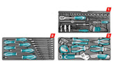 ابزار موجود در جعبه: آچار آلن ، آچار بکس ، آچار تخت ، آچار رینگی ، آچارشمع ، آچار فرلانسه ، آچار یکسرتخت یکسر رینگی ، انبر دم باریک ، سیم لخت کن ، انبرسیم چین ، انبر کلاغی ، انبر سیم لخت کن ، انبردست ، پیچ گوشتی ، دسته جغجغه ای ، سری بکس ، کاتر و متر