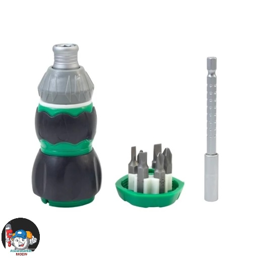 ✔دارای یک محفظه در انتهای دسته برای نگهداری 6 عدد سری پیچگوشتی متنوع با سایزهای مختلف PH، PZ، تخت، ستارهای و U شکل